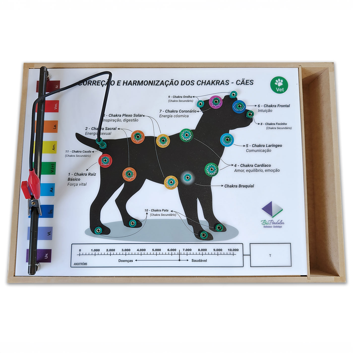 *Imagem do cão é ilustrativa para indicar a posição dos chakras, lembramos que a posição dos chakras nos cães e gatos são iguais, assim o aparelho pode ser utilizado para ambos.