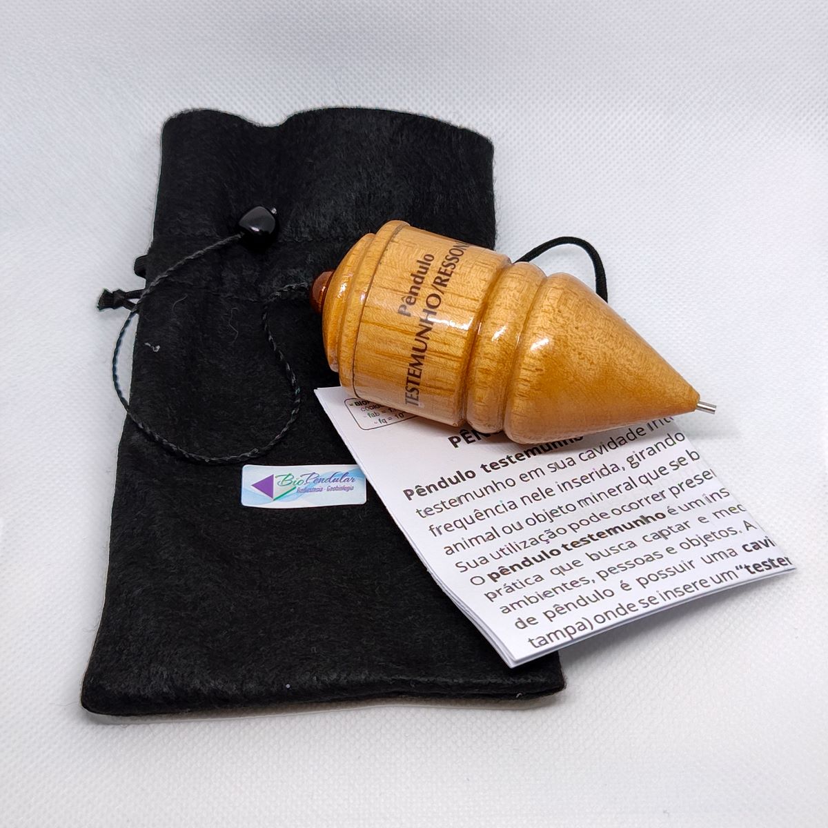 O pêndulo testemunho é um instrumento utilizado na radiestesia, prática que busca captar e medir energias e radiações sutis de ambientes, pessoas e objetos. A principal característica desse tipo de pêndulo é possuir uma cavidade interna (fechada por uma tampa) onde se insere um “testemunho”.